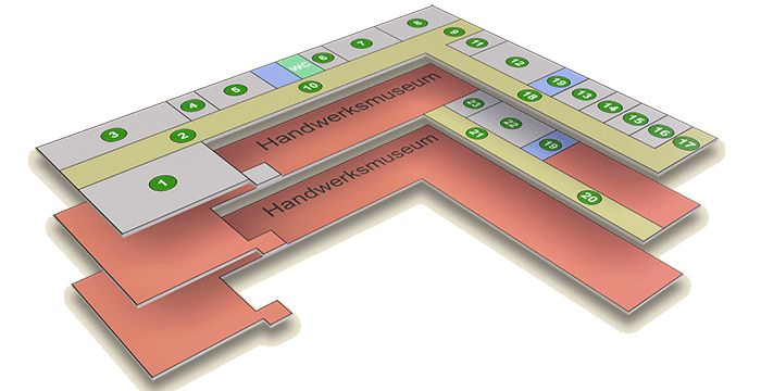 Die Gegenstände sind nach historischen Gesichtspunkten in zwei Teilen aufgestellt: